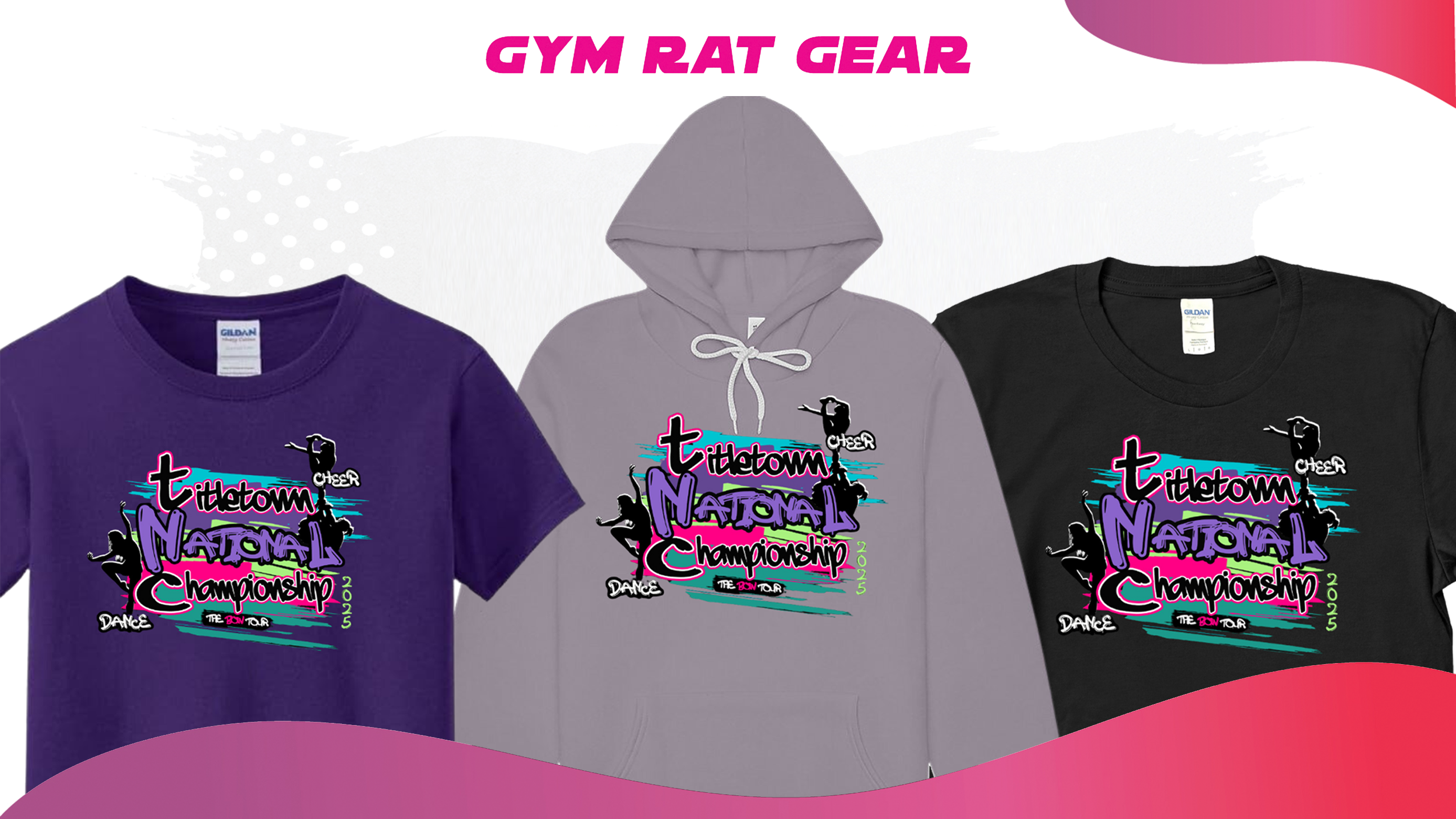 While your waiting for your favorite team to perform, be sure to visit our event vendors and shop their unique spirit merchandise. Our feature event vendor, Gym Rat Gear, has the official event shirt, custom apparel and accessories, and shout out good luck grams. Sweet Kiss Bow Company is back again this year with a huge assortment of trendy cheer bows.